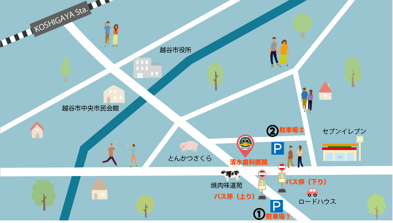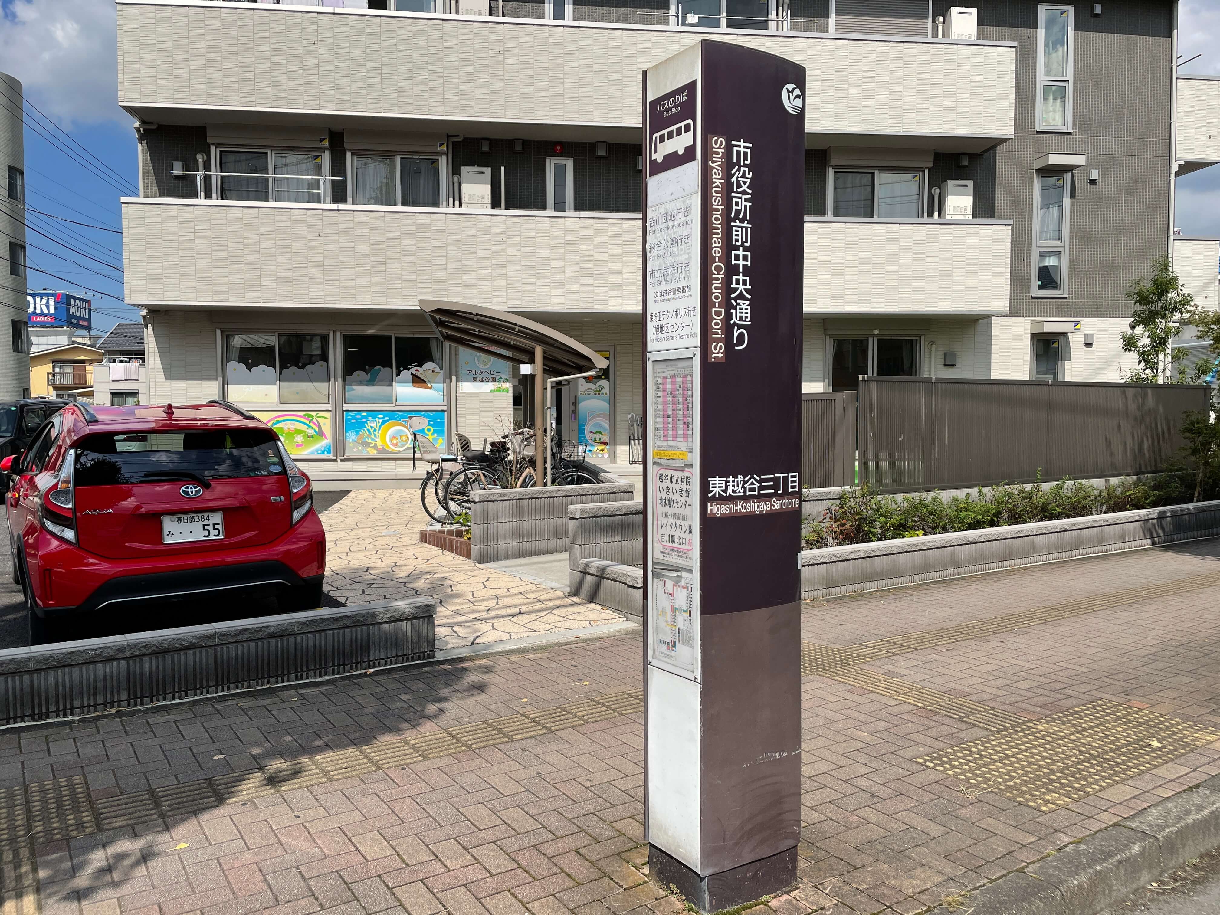 最寄駅方面からお越しの方は「東越谷三丁目(下り)」で下車してください。